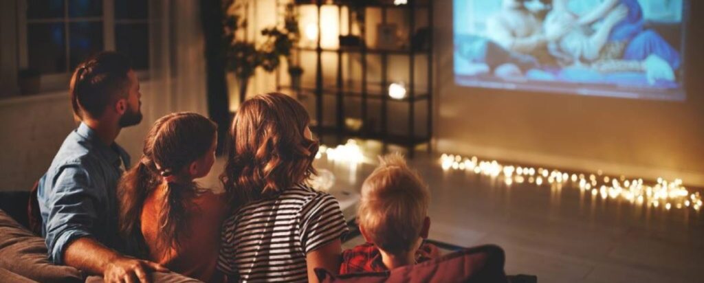 Vision Pro Home Entertainment Projector delivers 4K high resolutions. enhanced by Vision pro Cinematic color for richer, more lifelike color as directors envisioned, bringing captivaing content to life on the big screen.